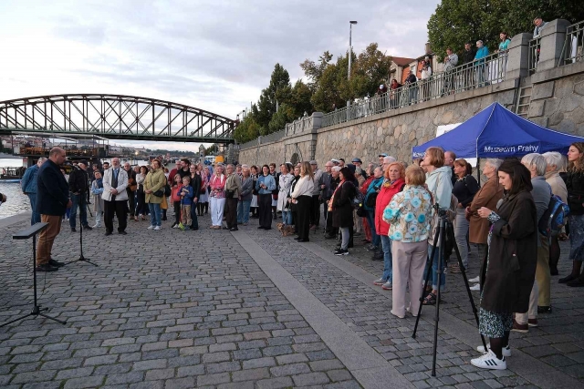 16.9.2025 Muzeum Prahy-V.O.R. Vltava,Odkaz,Reflexe,rozsvícení vorové tabele