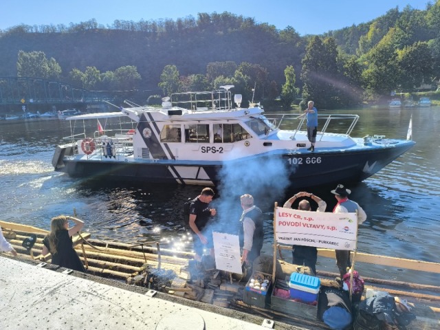 3.9.2025 Davelští plavci předali Vltavskou štafetu purkareckým plavcům na plavbu do Prahy